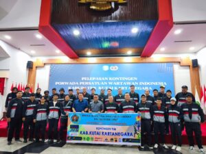 SATUKABARBERITA.COM – Sebanyak 37 wartawan dari Kabupaten Kutai Kartanegara (Kukar) resmi diberangkatkan untuk mengikuti Pekan Olahraga Wartawan Daerah (Porwada) Kalimantan Timur Tahun 2025 di Kota
